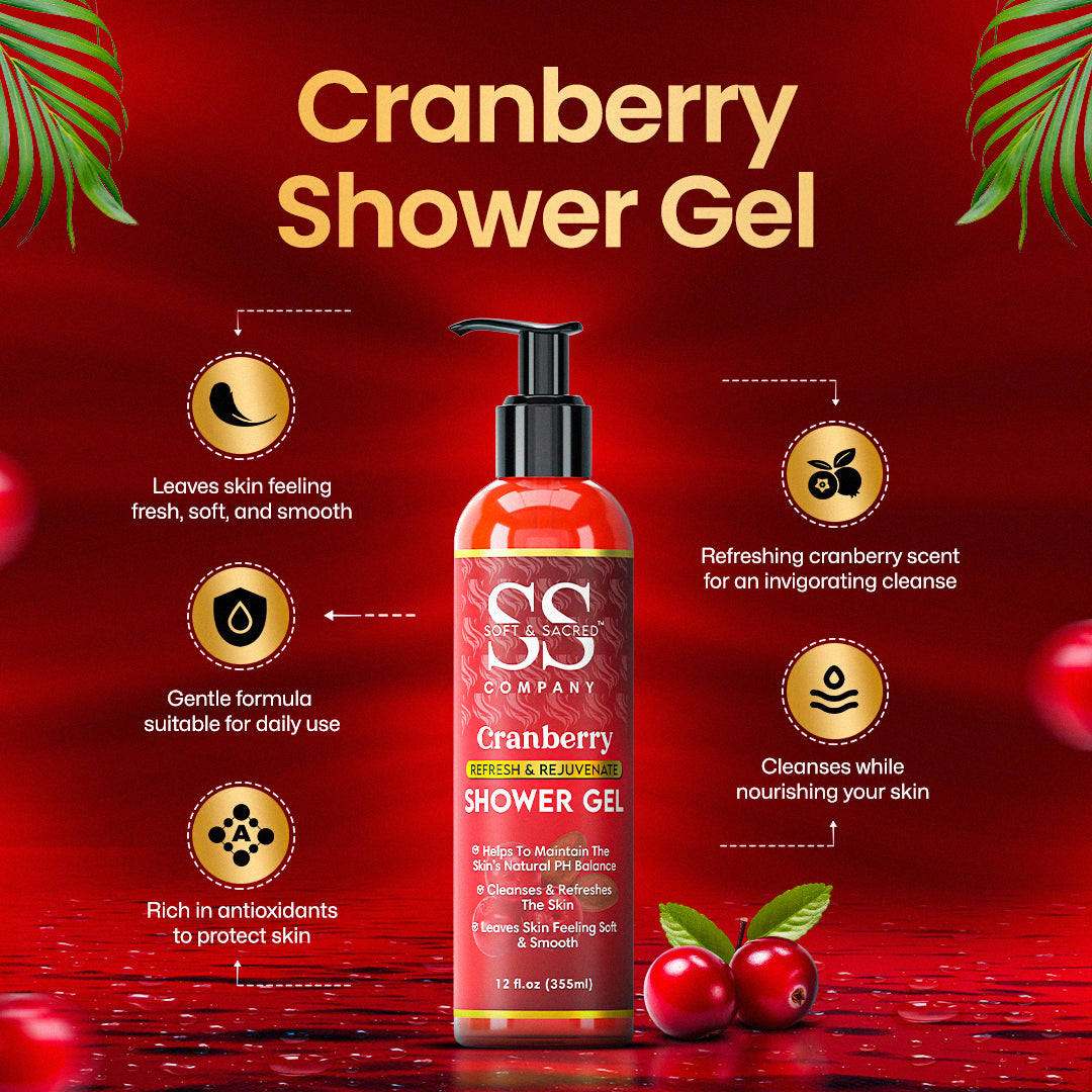 - Cranberry Shower Gel: Indulge in a luxurious shower experience that leaves your skin feeling hydrated, revitalized, and gently scented with the invigorating aroma of cranberry.